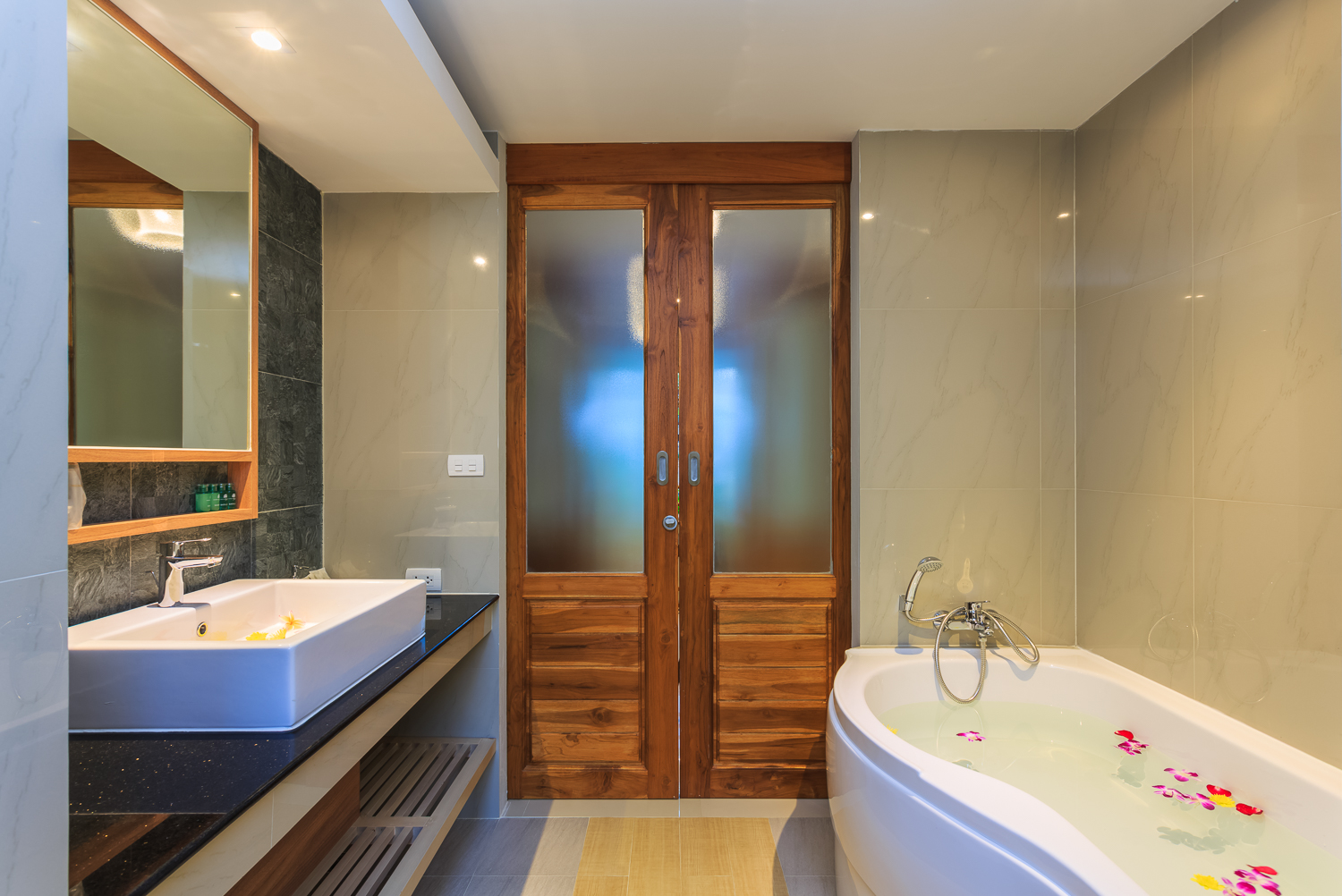 [email protected]Individual residence detached from the main buildings, offering spacious lodging all to yourself. Nearly twice the size of Deluxe and Superior rooms, this Villa comes with a walk-in closet, large window seat, bathtub, and expanded porch that provides access to an extensive knee-depth pool, perfect for leisurely wading, cooling off, or drifting on a pool float.